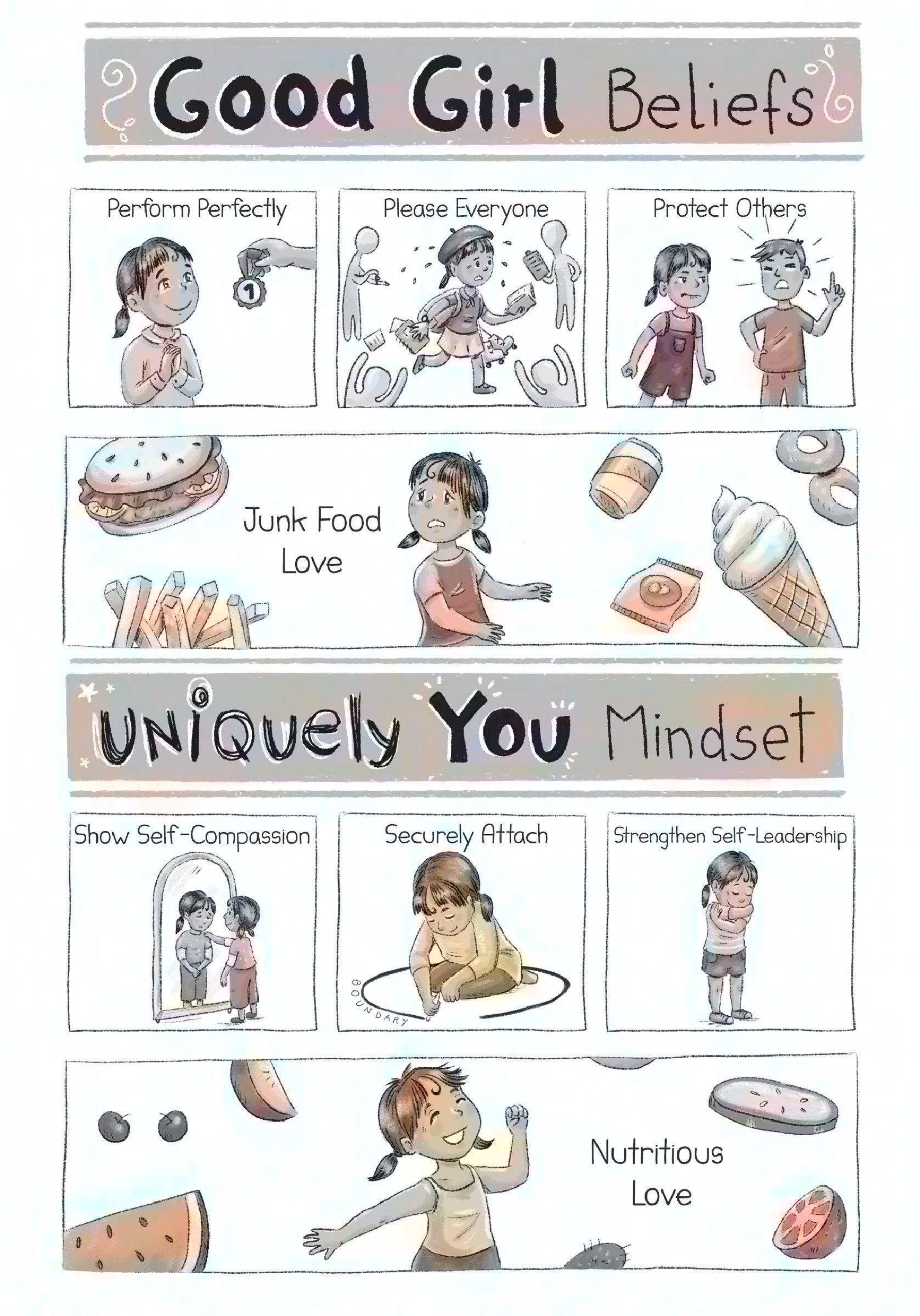 Our research is finding we can shift our ‘good girl’ beliefs when they don’t serve us well to embody our unique selves when we have the knowledge, tools, and support to: